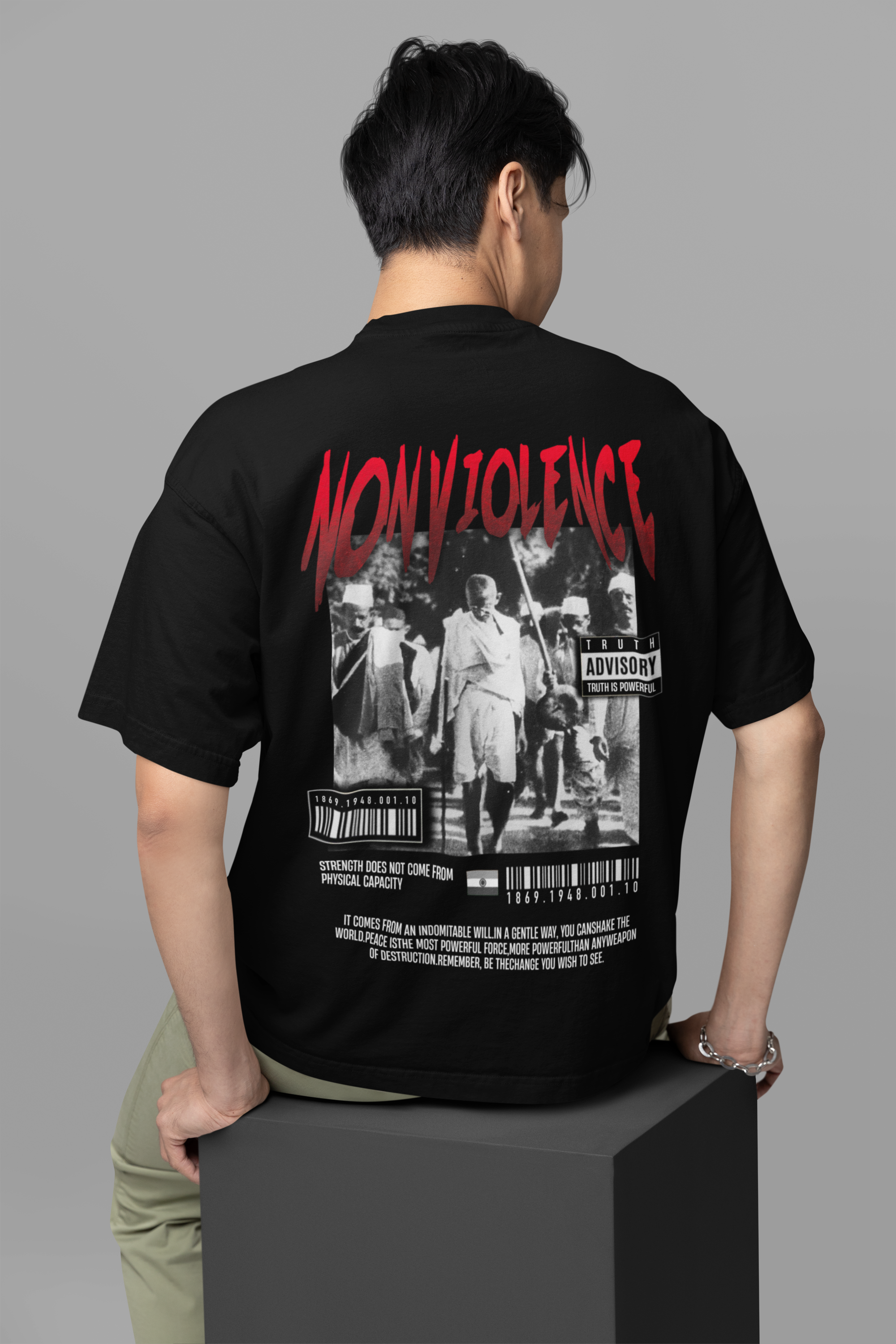 This oversized tee is more than clothing , it is a statement of courage, unity, and conviction. The main artwork on the back features Gandhi’s historic march, framed by bold distressed typography that demands attention. On the front, a subtle print reminds you that even the smallest acts carry the spirit of change.