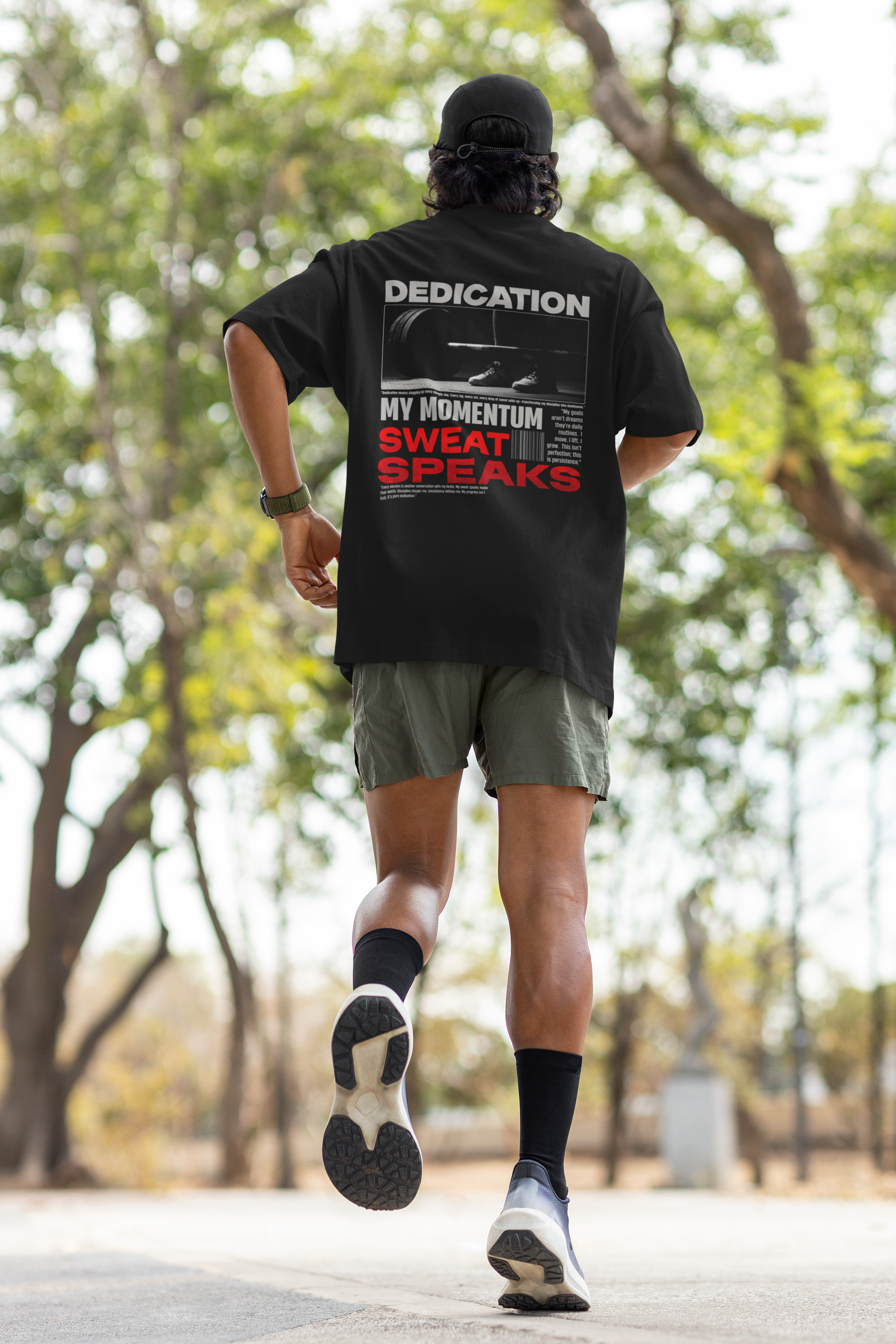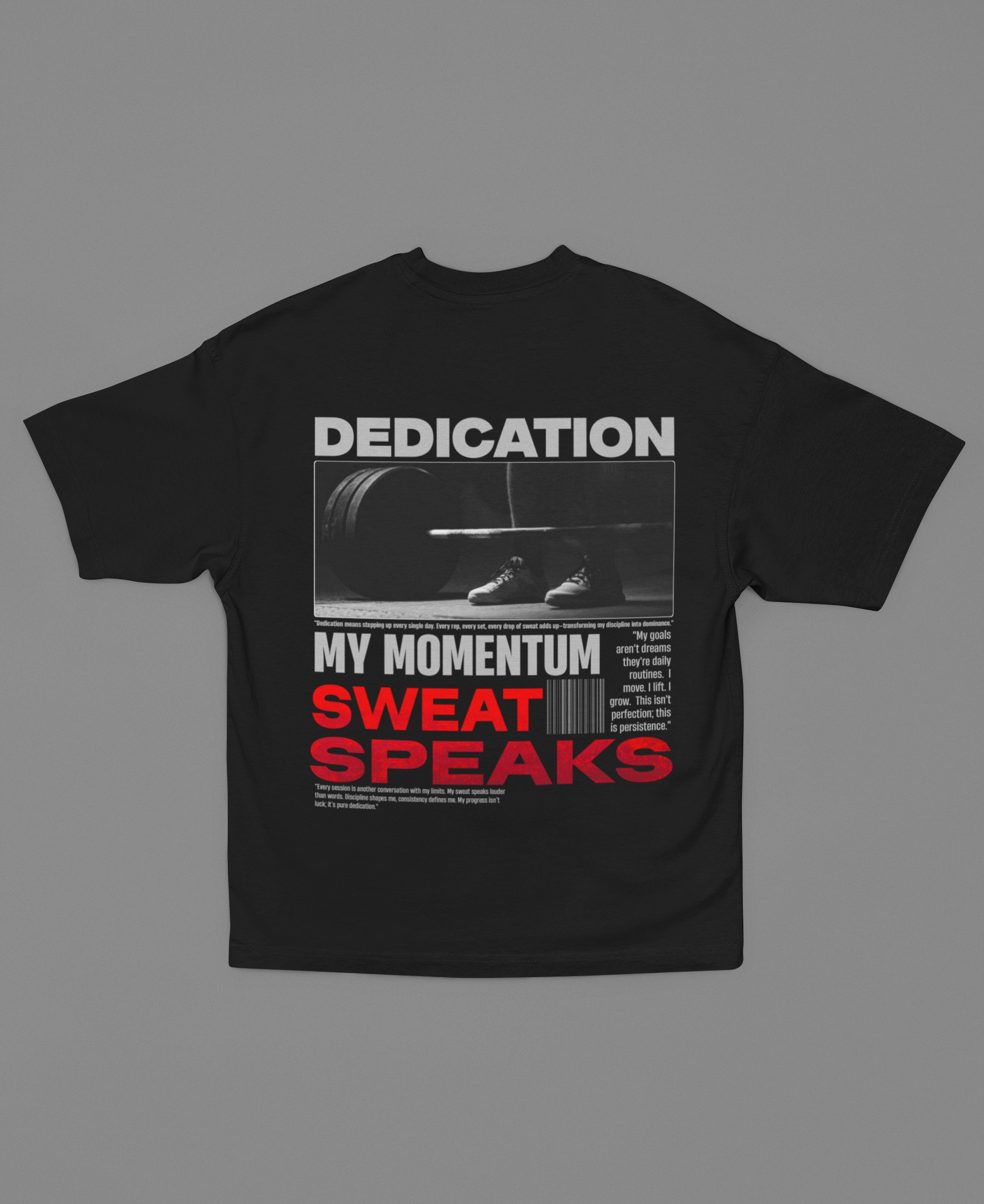 “DEDICATION. MY MOMENTUM. SWEAT SPEAKS.”